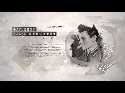 Фатьянов Алексей Иванович (1919–1959) — русский советский поэт-песенник. Родился 5 марта 1919 года в селе Малом Петрине (ныне город Вязники) Владимирской области. Учился в Литературном институте. В 1938 году по окончании школы-студии был принят в труппу театра Красной Армии, с 1940 года — в ансамбль Орловского военного округа. Начало Великой Отечественной войны застаёт его на гастролях в авиагарнизоне под Брянском. А.И. Фатьянов пишет сатирические частушки, сценки, песни.